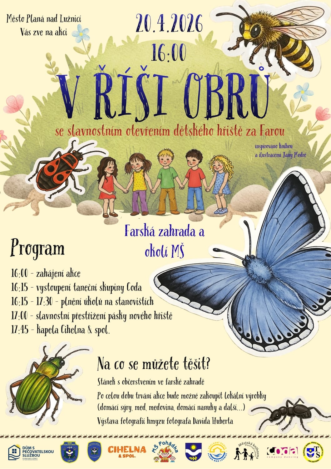 Zajděte mrknout na otevření nového dětského venkovního hřiště. Nudit se určitě nebudete. Zpívnem, zatančíme, dětství oslavíme... (-: